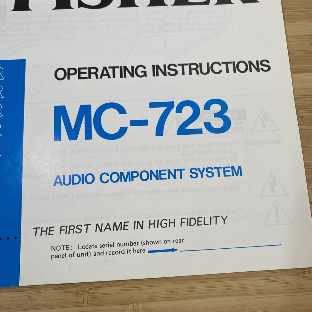 Excellent preowned condition. very light wear and tear. Smoke-free home. Operating manual for a Fisher record/ tape player MC – 723 MANUAL ONLY. Please note, returns are not accepted on this item....