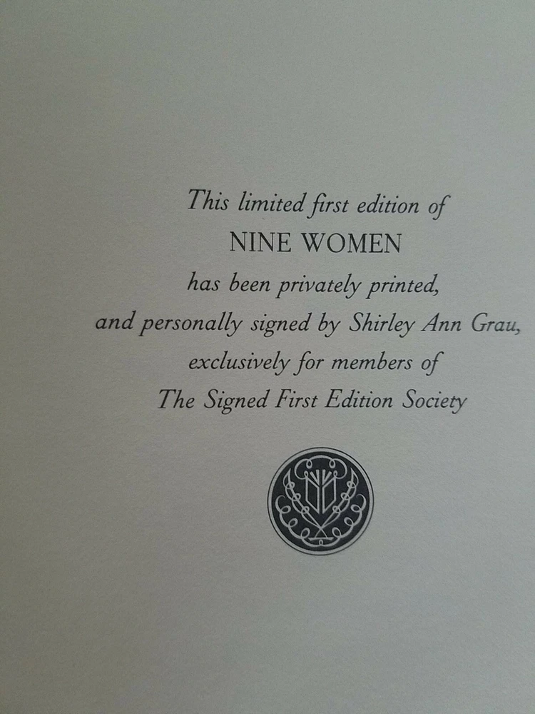 1986 Franklin Library Leather Book Nine Women by Shirley Ann Grau SIGNED 1ST EDITION. It shows no signs of damage. Please view pictures for details LOCATION B8
