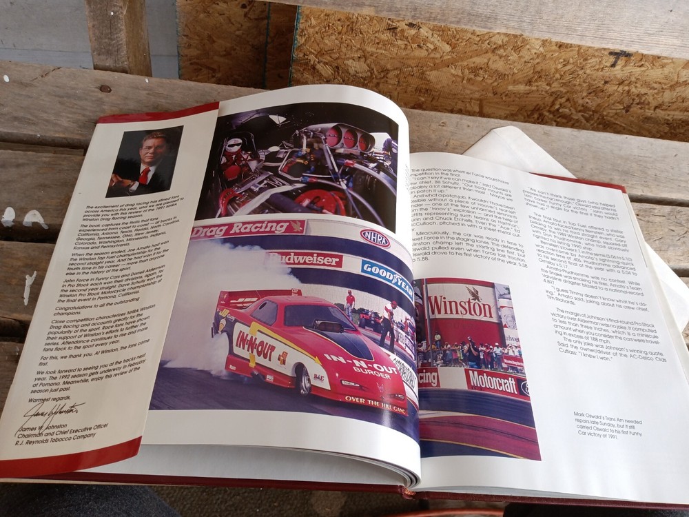 This leather-bound yearbook is a must-have for any NHRA fan! The quality is amazing, with crisp photos and detailed race highlights that take you back to the 1991 season. Perfect for a coffee table display—durable, stylish, and packed with nostalgia. Highly recommend for drag racing enthusiasts!