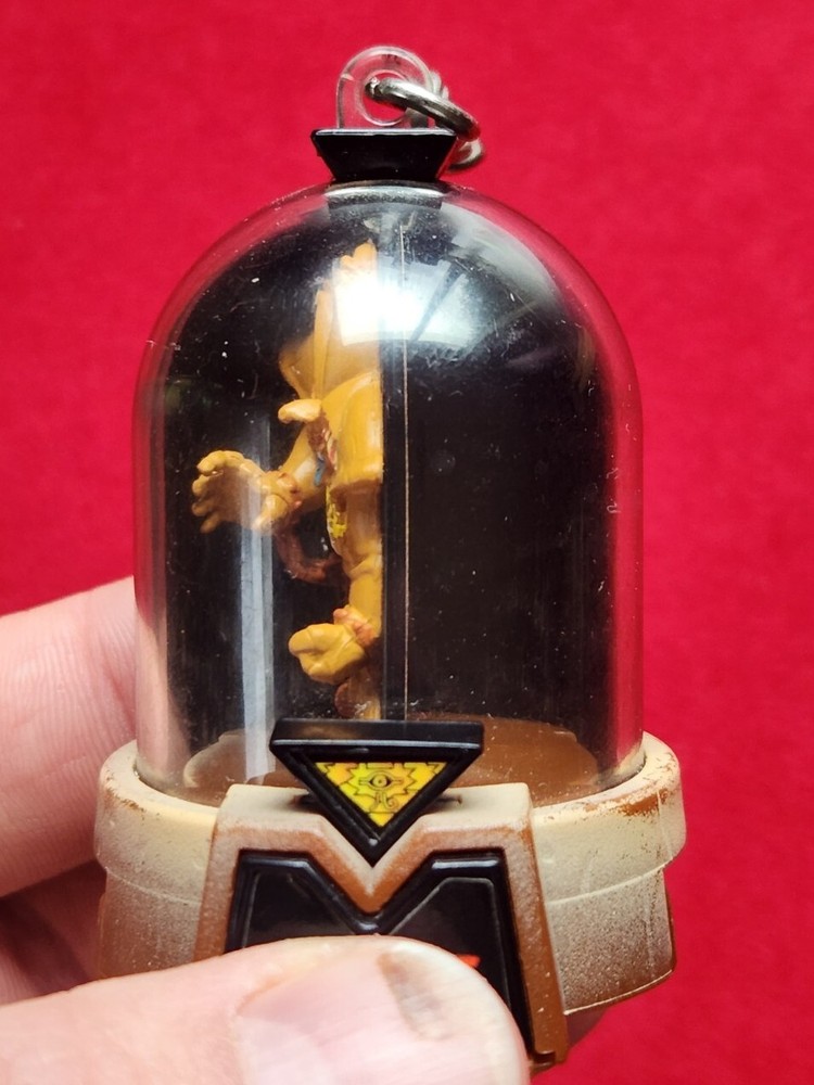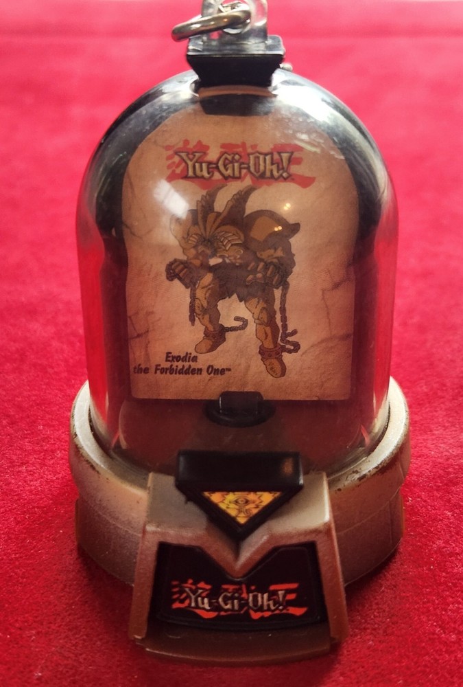 1996 YU GI OH KEY CHAIN SERIES 1 EXODIA THE FORBIDDEN ONE. Depress front button to spin. Then press top button to release. Works great!...