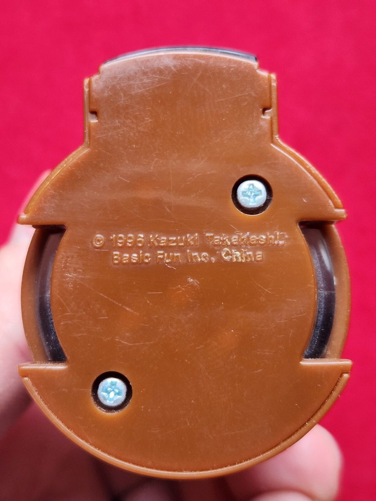 1996 YU GI OH KEY CHAIN SERIES 1 EXODIA THE FORBIDDEN ONE. Depress front button to spin. Then press top button to release. Works great!