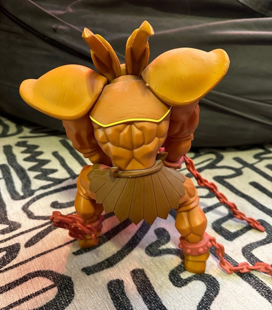 This is a vintage 1996 Yu-Gi-Oh Exodia The Forbidden One deluxe model figure, standing at 11 inches tall. Designed by Kazuki Takahashi, this action figure is made of plastic and was manufactured in China during the 1990s. As a part of the Yu-Gi-Oh! franchise, this collectible piece features the iconic character Exodia The Forbidden One, known for its significance in the popular trading card game and anime series. This item is a must-have for fans of Yu-Gi-Oh! looking to add a piece of nostalgic memorabilia to their collection.