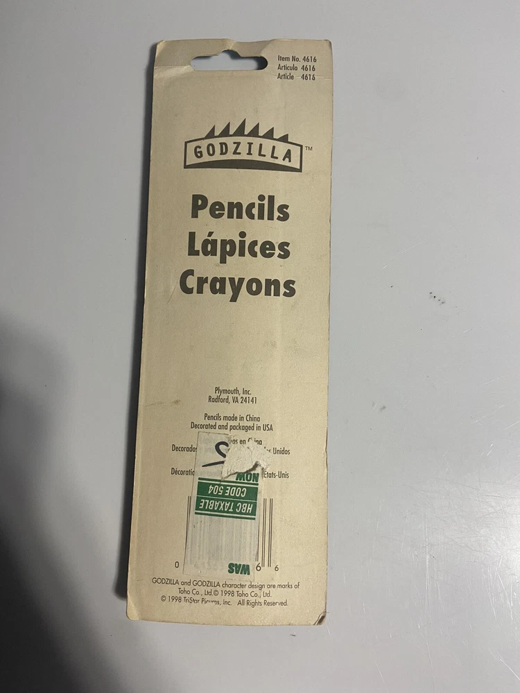 This 1998 Godzilla 5 piece pencil set is a must-have for any collector or fan of the iconic monster. Produced by Toho Toy Co and Plymouth Inc, this set features intricate designs and vibrant colors that bring each pencil to life. The set includes five unique pencils, each with its own personality and style. Whether you're a fan of the Godzilla franchise or simply appreciate well-crafted collectibles, this pencil set is sure to impress. With its Year 1998 design and Theme of Godzilla, this set is a rare find that will make a great addition to any collection. Don't miss out on the opportunity to own this one-of-a-kind piece of history.