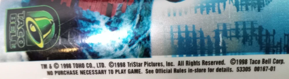 1998 Godzilla The Movie: Taco Bell cup holder with cup and lid new and UNUSED...