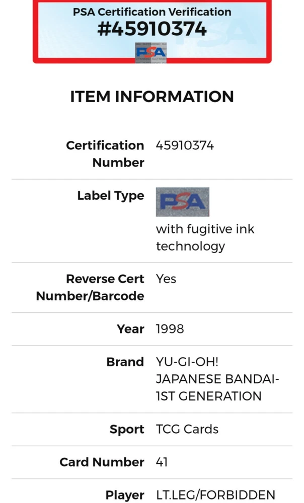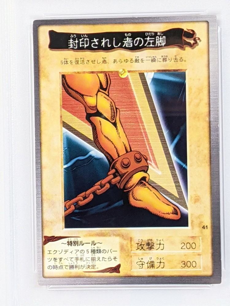 1998 YuGiOh Japanese Bandai Exodia the Forbidden One Left Leg 41 PSA POP 1. Condition is "Used". Shipped with USPS Priority Mail Flat Rate Envelope.