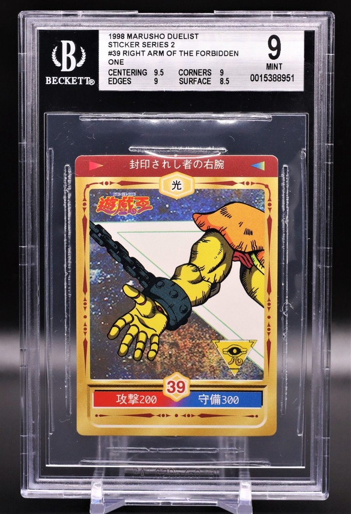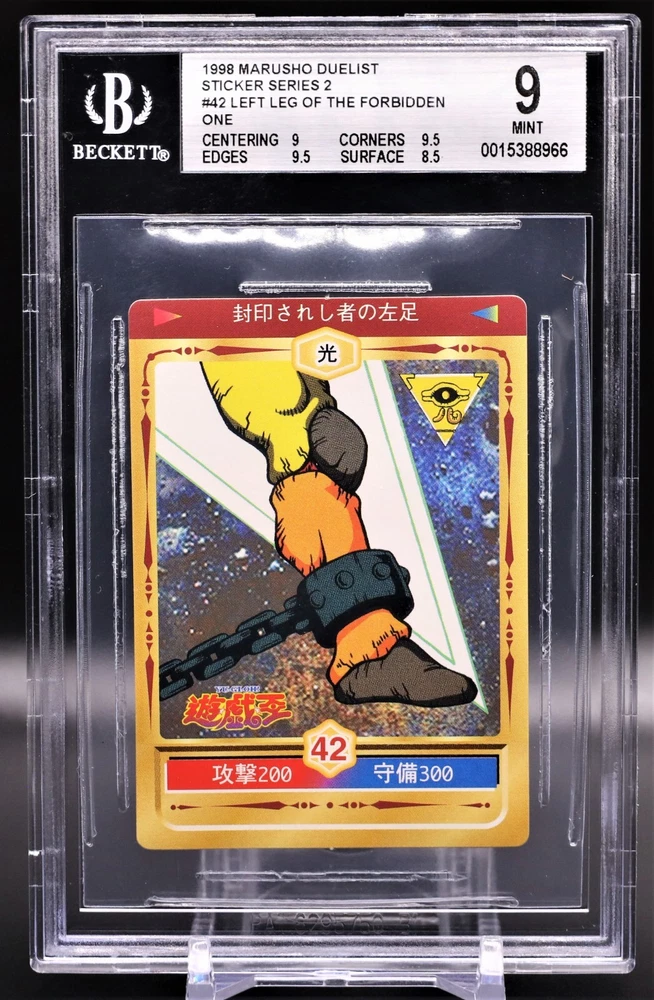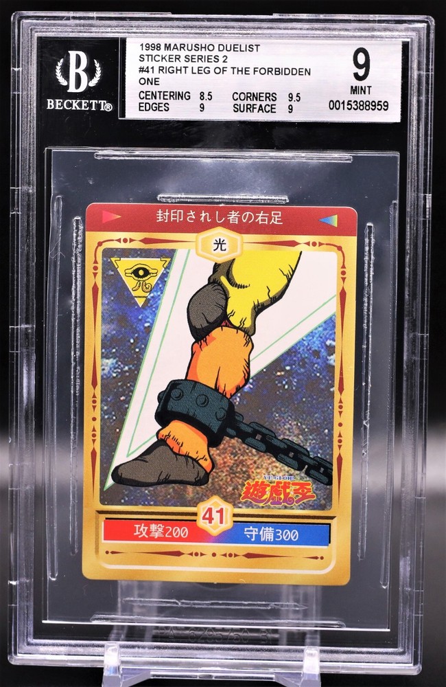 Exodia The Forbidden One 1998 Yugioh Marusho Duelist Set BGS 9 - Pop 3 None Higher - #38 Head BGS 9 - Pop 2 None Higher - #39 Right Arm BGS 9 - Pop 1 None Higher - #40 Left Arm BGS 9 - Pop 1 None Higher - #41 Right Leg BGS 9 - Pop 1 None Higher - #42 Left Leg