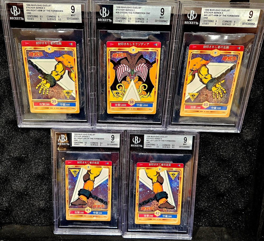 This Exodia set is an absolute grail for collectors! Every piece is BGS 9, with some being the highest-graded copies in existence. The condition is flawless, and the rarity is unmatched—owning this legendary set is a dream come true for any serious Yu-Gi-Oh fan. The Marusho Duelist origin adds even more prestige. A true centerpiece for any collection!