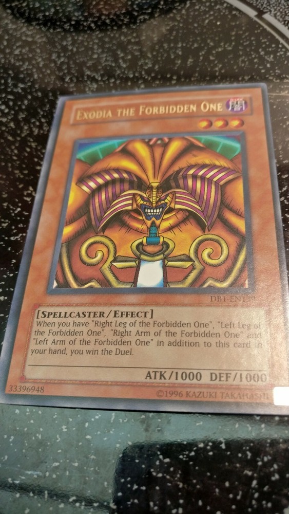 1x Yu-Gi-Oh! Exodia The Forbidden One - DB1-EN139 - Ultra Rare - NM Exodia The Forbidden One 1 Copy DB1-EN139 Ultra Rare Mint/Near Mint Condition Language: English Shipping from: Canada Shipping to: Canada, USA All card(s) are shipped in a hard plastic top-loader sleeve, securely taped. All item(s) in the listing are 100% Konami TCG authentic and are ready for tournament use. Photo(s) are of the actual item(s). Shipped from a smoke-free and pet-free home. Seller does not provide combine shipping discounts. Returns NOT accepted. All sales are final. Payment method(s) accepted: PayPal Seller reserves the right to cancel, modify or remove the listing at any time. IMPORTANT: ALL ORDERS THAT TOTAL TO/AND OR ABOVE $50.00 (INCLUDING REGULAR SHIPPING COSTS ($1.93 TO CANADA/$3.93 TO USA)), MUST INCLUDE AN ADDITIONAL $20.00 CHARGE TO INCLUDE TRACKING+ DELIVERY CONFIRMATION. THIS IS A MANDATORY ADD-ON TO BETTER PROTECT BOTH THE BUYER AND THE SELLER. IF YOU DO NOT WISH TO PAY THE ADDITIONAL CHARGES, THE ORDER WILL BE CANCELED AND YOU WILL RECEIVE A REFUND IN-FULL. THANK YOU FOR YOUR UNDERSTANDING!