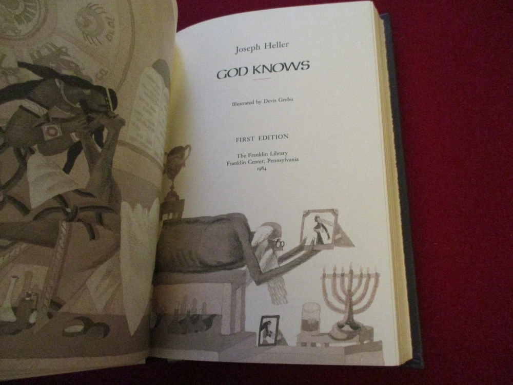 Pair of leather bound novels by Joseph Heller. These are from The Franklin Library. Both books are in very good condition. "Good as Gold" has some light rubbing to the bottom edge from the shelf. Gold embossed with gold gilt edges along with a ribbed spine and a bound-in bookmark. "God Knows" is signed by the author. Free media mail shipping.