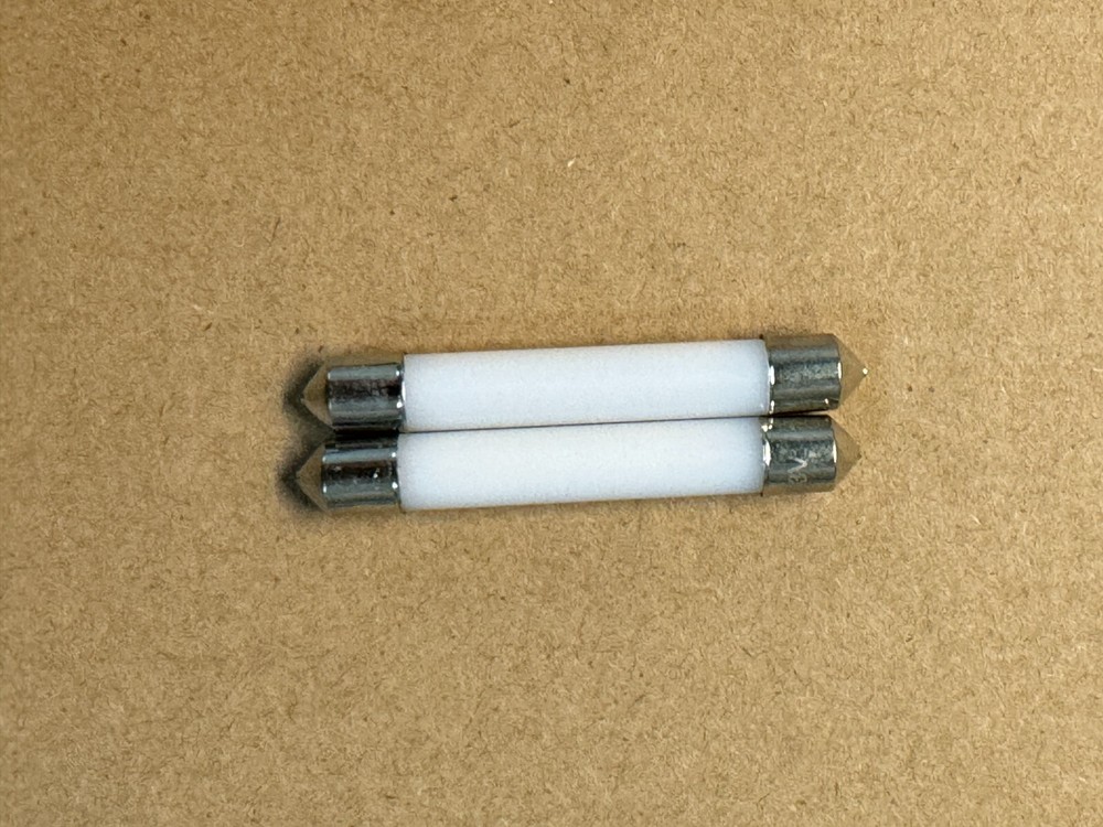 Up for sale here is this set of 2 new 6.3v 43mm frosted 360° snap-in warm white LED festoon lamps. These are MUCH different, and much higher-quality, than the normal LED festoon lamps that are available on eBay. These are custom-made and are 360-degree lamps, with a plastic cover to help diffuse the light perfectly. They will give you a nice even glow for your vintage gear. They are not as aggressively bright as the 3-LED bulbs. These are very slightly directional, so you may want to rotate them a little for the absolute best look. These are perfect for replacing any of the 43mm festoon lamps found in vintage gear, usually in the Fisher tube receivers like the 400, 500B, 500C, 600, 800B, and 800C. These are 43mm long and will fit nicely in the old holders. LEDs run cooler, last almost forever, and draw much less current than the old incandescent bulbs. These are brand new bulbs and are guaranteed to work great for you. These are plug-and-play, with built-in rectifiers, so they do not need resistors or anything else. Specs: Voltage: 6.3v AC/DC Current Draw: 90mA (75mA at 6v) Color: Warm White Length: 43mm Diameter: 6mm Polarity: Non-polar Please note that some Fisher gear used thicker festoon lamps than these 6mm lamps. You can usually squeeze the terminals together a bit and these bulbs will fit them fine. US shipping and handling is $5, and international is $18, no matter what quantity you buy. All my small parts are set up for combined shipping, so just use the "add to cart" feature and then check out all at once, and it will combine shipping. If you have any questions, please ask. Looking for more parts? I have power switches , feet , pushbuttons , top case screws , bottom screws , faceplate screws , white LED fuse lamps , blue LED fuse lamps , 6.3v bi-pin bulbs , 8v bi-pin bulbs , 12v bi-pin bulbs , wired 8v 60ma bulbs , new power cords , new main capacitors for the Marantz 1060/2230 , wired Pioneer speaker plug replacements , new 630v yellow film capacitors at 30 different values , a large variety of transistors for vintage stereo repair, new Wima film capacitors for stereo repair , new 250v yellow film crossover capacitors, and more. Just use "add to cart" on everything you want and then check out for combined shipping.
