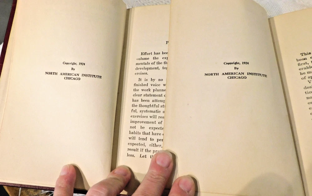 Explore the art of public speaking with the vintage "Training of the Voice & Selected Speeches for Practice" from the Public Speaking Library Series. Published in 1924 by North American Institute, this first edition offers insights into voice development and speech practices, bound in an elegant leather format that exudes a classic charm. Authored by R. E. Pattison Kline, this nonfiction volume is a testament to the timeless nature of effective communication. It's ideal for adults and young adults seeking to hone their speaking skills or those with a keen interest in the evolution of speech and language training methodologies. Beautiful edition to library decor with its red leather bound covers. Pre-owned in very good condition. Minor wear for being over 100 years old. Feedback is left after feedback is received to ensure the item has arrived safely and the customer is satisfied with the purchase. Combined shipping is available for like item. Please contact me before you purchase for combined shipping invoice.