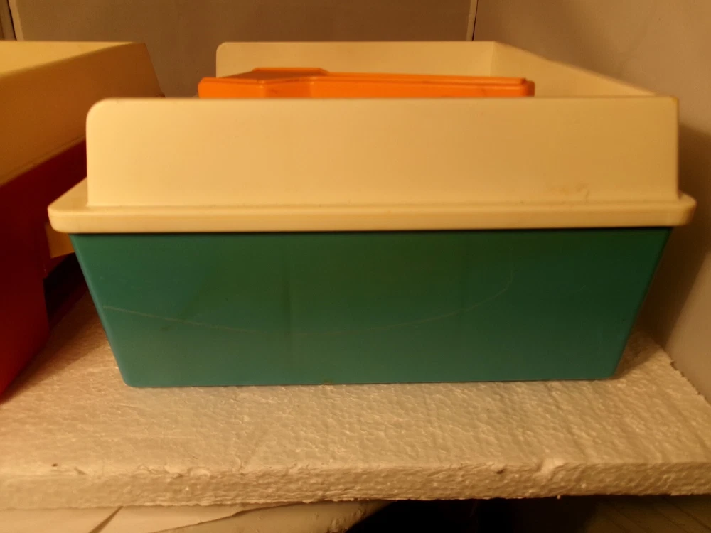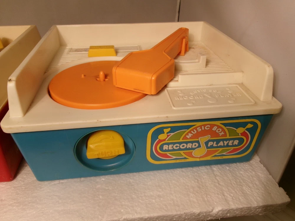 These vintage Fisher Price music box record players are such nostalgic gems! The 1971 red one and 1987 blue one both spin smoothly when wound up, though the older model runs a bit slower. While untested with records, they seem mechanically sound—perfect for collectors or as charming decor. Selling as-is, but they appear to be in great working condition! A delightful find for anyone who loves retro toys.