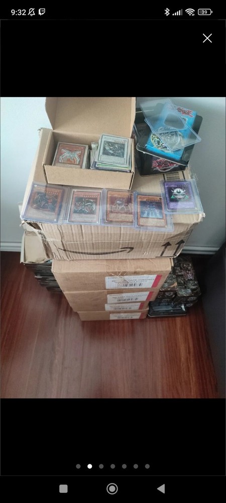 More than 20000 YuGiOh cards. All type of cards, common, rare, super rare, ultimate rare, holo, starlight rare... There are old and new collections cards, a lot of Dark magician, blue eyes white dragon, obelisk the tormentor, slifer the Sky dragon... A collections done with love and lot of time. All tins and cards in the photos are included. Most of cards in English and Spanish.