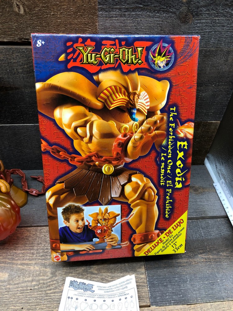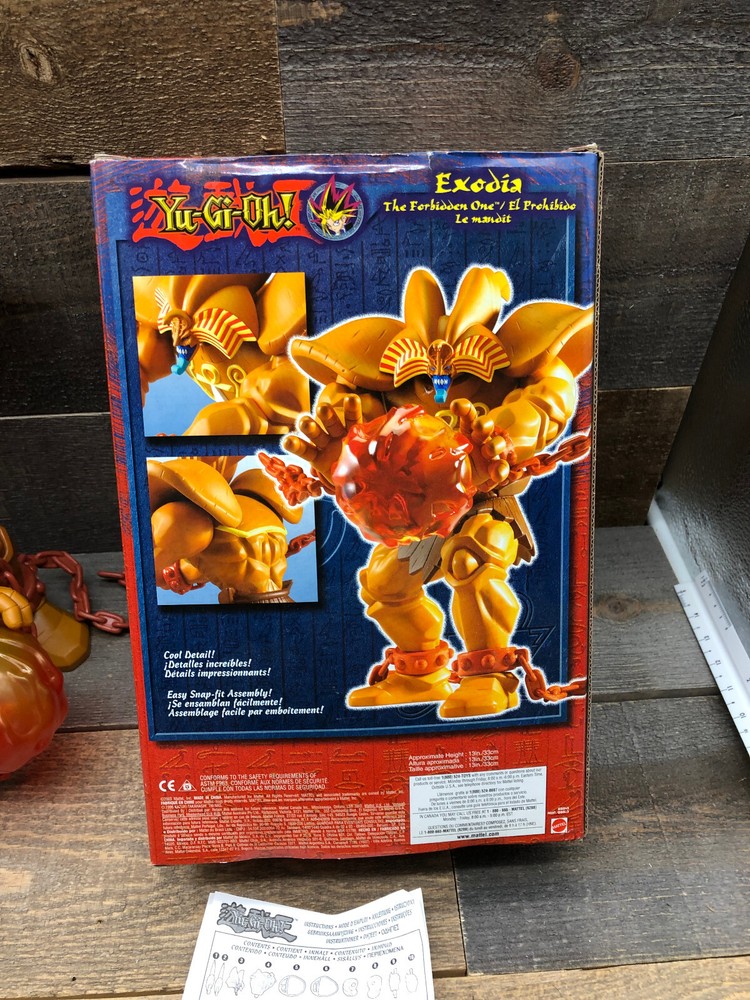 for sale is a yugioh exodia the forbidden one 13 inch figure overall in good shape comes with the original box and instructions all pieces are there any questions please ask canceled requests will only be approved once funds are done processing 24-48 hrs since feedback is so important to ebay feedback will be left when feedback is received I will only ship to a confirmed address. USPS is accountable for delivery time once its handed over to them...shipment late? call the usps 1-800 number Insurance is your responsibility?if you need it message me I will send an invoice to you for it If you are worried about delivery of your package I can require a signature which costs $3.10 additional. Message me before purchase 245