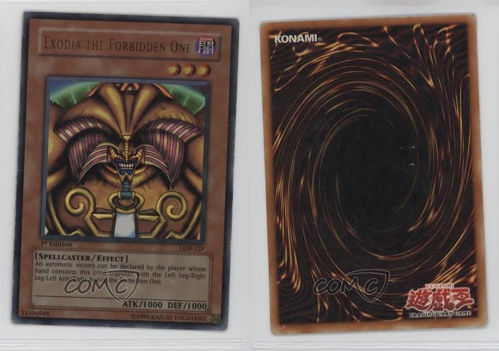 2002 Yu-Gi-Oh! Legend of Blue Eyes White Dragon - [Base] - 1st Edition "Asian American" Back #LOB-124 Exodia the Forbidden One COMC Item: 195876320 - YuGiOh Card - Featuring Exodia the Forbidden One Search for more: 2002 Yu-Gi-Oh! Legend of Blue Eyes White Dragon Search for more: 2002 Yu-Gi-Oh! Legend of Blue Eyes White Dragon - [Base] - 1st Edition "Asian American" Back View all of our Listings Auctions Buy It Now About Us Located in the beautiful Pacific Northwest, COMC (Check Out My Cards) is the world's largest consignment service for trading card singles. More than 10,000 people have used our consignment service to list over 50 million trading cards. Find out how we can help you consign your items on eBay by contacting us through eBay messaging. COMC -- "The Safe & Easy Way to Buy & Sell" Raw Condition for Modern Cards Unless otherwise noted, raw modern cards are listed in Near Mint-Mint condition or better. A NM-MT card appears to be Mint at first glance, but upon closer inspection, may exhibit some of the following: minor print defects (e.g. roller marks, print line, dimple), minor scratches, slight edge wear, and slight corner wear. Centering is clearly visible in the images provided and does not factor into our condition assessment. Raw Condition for Vintage Cards Unless otherwise noted, raw vintage cards are listed in Excellent condition or better. An EX card may exhibit some of the following: minor rounding of corners, surface wear, print defects, light scratches, and slight edge wear/chipping. Centering is clearly visible in the images provided and does not factor into our condition assessment. Domestic Shipping Combined shipping for multiple items is available. To receive combined shipping, please ensure all desired items are in your eBay shopping cart before proceeding to checkout. eBay limits orders to 40 items per order. We automatically combine multiple orders placed on the same day. If you place multiple orders on the same day, please contact us to request a refund of applicable shipping costs. Signature confirmation may be required on invoices over $400. All cards are protected and shipped securely. International Shipping COMC offers eBay's International Shipping (EIS) for international orders under $2,500* (see country exceptions below). All duties and import fees are paid at checkout; in the rare event that there are additional import fees upon delivery, these are borne by the buyer. EIS packages route through a shipping hub in Erlanger, KY before shipping to their final destination. Please note that EIS does not allow for combined shipments. The shipping rates are determined by eBay and cannot be adjusted. *Maximum sale price exceptions: Colombia, Kuwait ($2,000); Taiwan ($1,539); Chile, Costa Rica, Guatemala, Honduras, Trinidad and Tobago ($1,000); Antigua and Barbuda, Aruba, Belize, Dominica, Grenada, Philippines, Saint Kitts and Nevis, Saint Lucia, Montserrat, Turks and Caicos Islands ($500); Dominican Republic, El Salvador ($200). Please request a shipping quote through eBay messaging for orders that exceed the maximum sale price supported by eBay's International Shipping. You will be responsible for all duties and import fees for international orders shipped outside the EIS. All cards are protected and shipped securely. Payment COMC does not accept offers on our cards through our eBay storefront. COMC utilizes eBay’s managed payments system. If you are experiencing difficulties making a payment, please contact eBay for assistance. Return Policy Returns are only accepted on the rare occasion the item is not as described. If you are making a return, please initiate the return process through eBay so a mailing label can be provided for you. Prior to listing, our expert team carefully assessed this item to represent it accurately. Please review the description and high-definition images prior to purchasing to ensure this item meets your satisfaction. We welcome you to contact us if you have further questions about this item. Trust and Integrity COMC carefully assesses each item consigned to us to prevent fraudulent items from entering the marketplace. If you believe an item offered on COMC may be fraudulent, please contact us with details so we can investigate the issue. Items we determine are outside our supported items policy may be removed. Last Modified: 5/13/2025 12:03:29 PM PDT