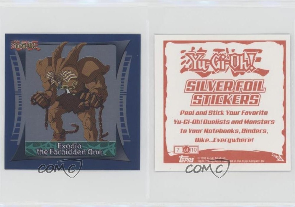 2002 Topps Yu-Gi-Oh! Sticker Collection - Silver Foil #7 Exodia the Forbidden One COMC Item: 123017298 - YuGiOh Card - Featuring Exodia the Forbidden One Search for more: 2002 Topps Yu-Gi-Oh! Sticker Collection Search for more: 2002 Topps Yu-Gi-Oh! Sticker Collection - Silver Foil View all of our Listings Auctions Buy It Now About Us Located in the beautiful Pacific Northwest, COMC (Check Out My Cards) is the world's largest consignment service for trading card singles. More than 10,000 people have used our consignment service to list over 50 million trading cards. Find out how we can help you consign your items on eBay by contacting us through eBay messaging. COMC -- "The Safe & Easy Way to Buy & Sell" Raw Condition for Modern Cards Unless otherwise noted, raw modern cards are listed in Near Mint-Mint condition or better. A NM-MT card appears to be Mint at first glance, but upon closer inspection, may exhibit some of the following: minor print defects (e.g. roller marks, print line, dimple), minor scratches, slight edge wear, and slight corner wear. Centering is clearly visible in the images provided and does not factor into our condition assessment. Raw Condition for Vintage Cards Unless otherwise noted, raw vintage cards are listed in Excellent condition or better. An EX card may exhibit some of the following: minor rounding of corners, surface wear, print defects, light scratches, and slight edge wear/chipping. Centering is clearly visible in the images provided and does not factor into our condition assessment. Domestic Shipping Combined shipping for multiple items is available. To receive combined shipping, please ensure all desired items are in your eBay shopping cart before proceeding to checkout. eBay limits orders to 40 items per order. We automatically combine multiple orders placed on the same day. If you place multiple orders on the same day, please contact us to request a refund of applicable shipping costs. Signature confirmation may be required on invoices over $400. All cards are protected and shipped securely. International Shipping COMC offers eBay's International Shipping (EIS) for international orders under $2,500* (see country exceptions below). All duties and import fees are paid at checkout; in the rare event that there are additional import fees upon delivery, these are borne by the buyer. EIS packages route through a shipping hub in Erlanger, KY before shipping to their final destination. Please note that EIS does not allow for combined shipments. The shipping rates are determined by eBay and cannot be adjusted. *Maximum sale price exceptions: Colombia, Kuwait ($2,000); Taiwan ($1,539); Chile, Costa Rica, Guatemala, Honduras, Trinidad and Tobago ($1,000); Antigua and Barbuda, Aruba, Belize, Dominica, Grenada, Philippines, Saint Kitts and Nevis, Saint Lucia, Montserrat, Turks and Caicos Islands ($500); Dominican Republic, El Salvador ($200). Please request a shipping quote through eBay messaging for orders that exceed the maximum sale price supported by eBay's International Shipping. You will be responsible for all duties and import fees for international orders shipped outside the EIS. All cards are protected and shipped securely. Payment COMC does not accept offers on our cards through our eBay storefront. COMC utilizes eBay’s managed payments system. If you are experiencing difficulties making a payment, please contact eBay for assistance. Return Policy Returns are only accepted on the rare occasion the item is not as described. If you are making a return, please initiate the return process through eBay so a mailing label can be provided for you. Prior to listing, our expert team carefully assessed this item to represent it accurately. Please review the description and high-definition images prior to purchasing to ensure this item meets your satisfaction. We welcome you to contact us if you have further questions about this item. Trust and Integrity COMC carefully assesses each item consigned to us to prevent fraudulent items from entering the marketplace. If you believe an item offered on COMC may be fraudulent, please contact us with details so we can investigate the issue. Items we determine are outside our supported items policy may be removed. Last Modified: 5/13/2025 2:19:38 AM PDT
