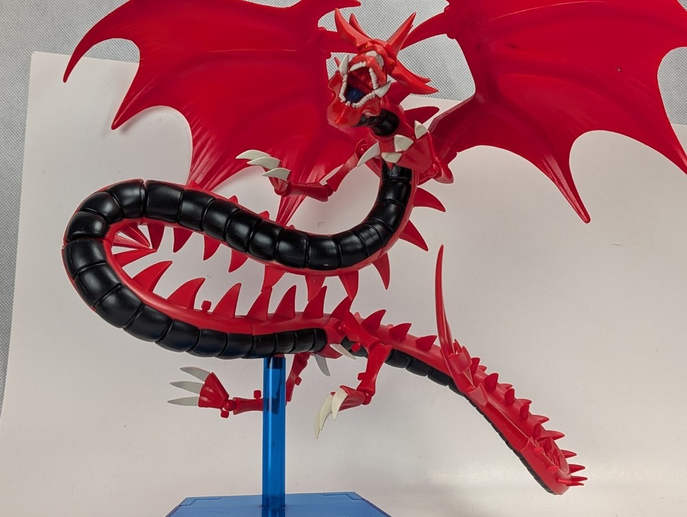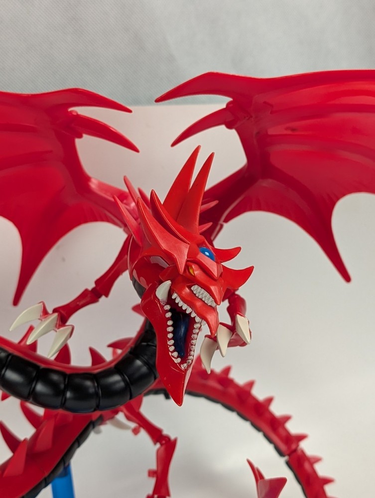 2003 Yu-Gi-Oh SLIFER The Sky DRAGON 13" Mattel Deluxe Model Kit. hard to let go this is part of the best Yu-Gi-Oh monster toy ever produced. This is the large 13-in combined dragon. This figure is 100% complete The figure has all four legs / arms. It displays very well and really well. That being said some of the joints like the neck or the waist are loose. Remember this was meant for kids to be played with and popping it open and close a few times makes the joints loose. but the figure will still hold strong together and not fall apart on you. Unless you start playing with it and then of course it will fall apart since it was meant to be a model kit