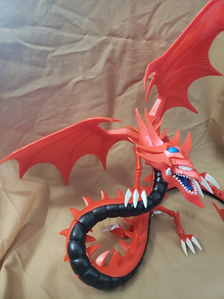 For all the fans of the Yu-Gi-Oh! series, this 13-inch Slifer the Sky Dragon Deluxe Model Kit Figure is a must-have rare item that you wouldn't want to miss. This highly detailed action figure of the powerful Egyptian God, Slifer the Sky Dragon, is made of plastic material and comes in a boxed package, srand not included. making it a great addition to any collection. With its vibrant red color and intricate design, this Slifer the Sky Dragon figure is perfect for display or play. It features the character's iconic wings, tail, and mane, as well as his powerful arms and legs. This collectible item is perfect for fans of the Yu-Gi-Oh! series and those who love to collect action figures.