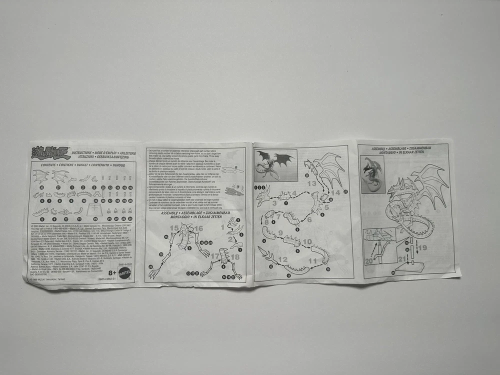 Rare 2003 Yu-Gi-Oh! Mattel Model Kit Figure of Slifer the Sky Dragon, perfect for any Yu-Gi-Oh! fan! All original parts are included with instruction manual. Toy parts are in good condition. Condition of box is shown in photos. All sales are final . Please refer to photos before purchasing. Feel free to message with any questions. Consider bundling with other listings for combined shipping. Will ship with care. Shipping price includes label and packaging.