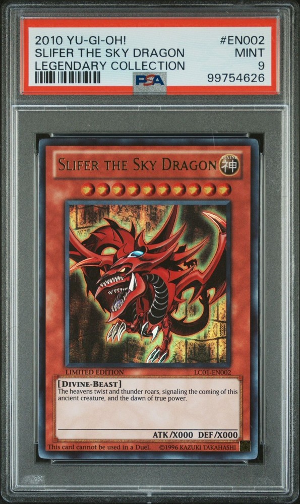 This listing is for 1 copy of Slifer the Sky Dragon from Legendary Collection 2010 graded PSA 9. The card picturedis the card you will receive. No international shipping. Please feel free toreach out with any questions.