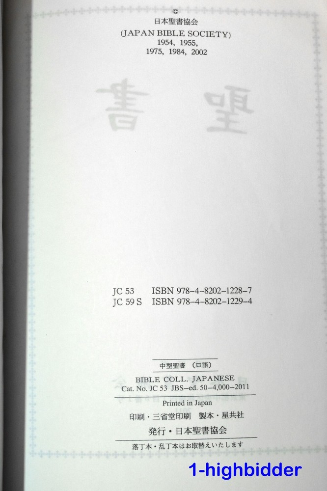 2011 Holy Bible by the Japan Bible Society Leather or Leatherette Bound Japanese ________________________________ Holy Bible Published by the Japanese Bible Society (2011) Condition: LIKE NEW Softcover Book bound with supple leather or leatherette?! The book measures 14.25cm x 18.75cm (5.625" x 7.375") The binding is tight and all pages within are bright white with NO WRITING, UNDERLINING, HIGH-LIGHTING, RIPS, TEARS, BENDS OR FOLDS. The covers look perfect. The dust jacket is in near perfect condition but does have minimal wear, as can be seen in my photos. You will be happy with this one! Always handled and packaged with care! Buy with confidence from a seller who takes the time to show you the details and not use just stock photos. Please check out all my pictures and email with any questions! Thanks for looking! About the Japanese Bible Society: The Japanese Bible Society (JBS) has a rich history dating back to the early 19th century when Christian missionaries first arrived in Japan. The society played a vital role in the translation, distribution, and promotion of the Bible in Japan. The first Protestant missionaries, such as Karl Friedrich August Gützlaff and C. M. Williams, arrived in Japan in the mid-19th century, and they recognized the need for translating the Bible into Japanese to share the Christian message with the local population. The translation process began with the New Testament, and by 1888, the entire Bible was translated into Japanese. In 1901, the Japanese Bible Society was officially established in Tokyo with the mission of translating, publishing, and distributing the Bible in Japan. The society worked tirelessly to make the Bible accessible to the Japanese people, who had limited exposure to Christianity at the time. The Japanese Bible Society's work faced challenges during World War II, as religious activities, including Bible distribution, were restricted. However, after the war, the society resumed its efforts to make the Bible available to the Japanese people. They provided Bibles to churches, schools, and individuals, promoting the message of Christianity and supporting the growth of Christian communities in Japan. The Japanese Bible Society also engaged in various educational and promotional activities to encourage Bible reading and understanding. They organized seminars, workshops, and Bible study groups to foster a deeper appreciation for the scriptures. Over the years, the society continued to revise and improve its Japanese Bible translations to ensure accuracy and relevance to contemporary readers. They also developed various editions and formats, making the Bible accessible to people of all ages and backgrounds. Today, the Japanese Bible Society remains committed to its mission of Bible translation and distribution. They collaborate with other Christian organizations and work to promote the values and teachings of the Bible in Japanese society, contributing to the cultural and spiritual heritage of Japan. Copyright © 2018-2023 TDM Inc. The photos and text in this listing are copyrighted. I spend lots of time writing up my descriptions and despise it when un-original losers cut and paste my descriptions in as their own. It is against ebay policy and if you are caught, you will be reported to ebay and could be sued for copyright infringement and damages.