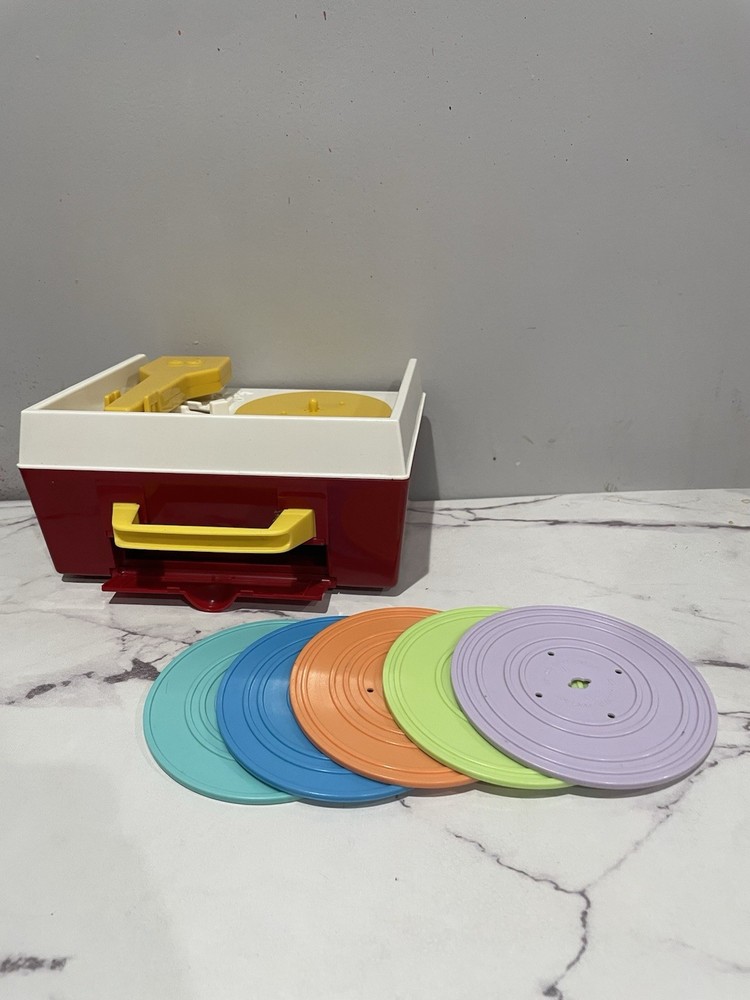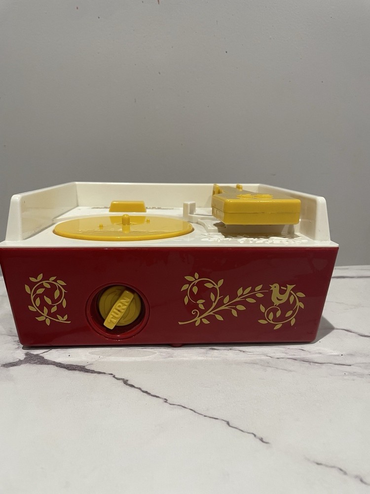 This vintage Fisher-Price music box record player is a classic toy that will bring back memories of childhood. It has been tested and is in working condition, playing clean and clear. The toy is suitable for children aged 1-4 years and is a great addition to any toy collection. The clockwork/wind-up feature adds to the charm of this vintage piece. It is perfect for young children who love to play with classic toys.
