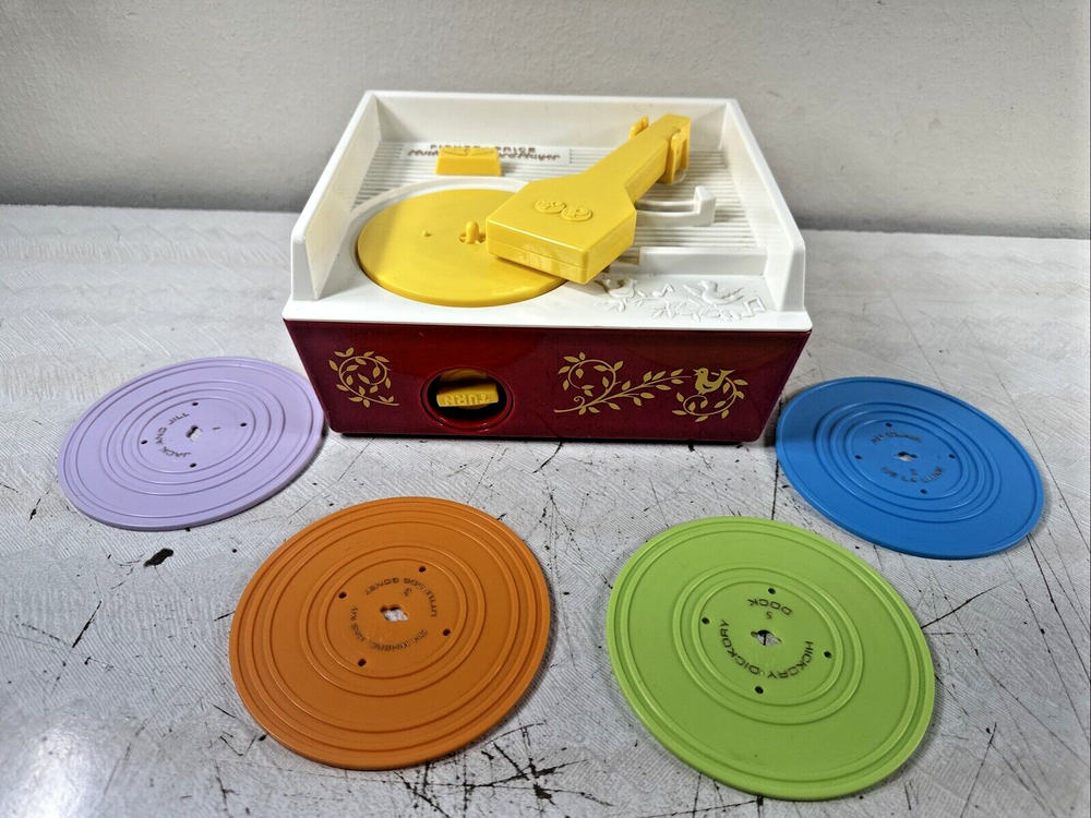 This 2014 Fisher Price Music Box/Record Player is a fantastic addition to any child's toy collection. It comes with 4 records and is in great working order. The brand is well-known for its quality and durability, making it a reliable choice for parents. The music box is perfect for preschool-aged children and will provide hours of entertainment. It is a great gift for any occasion and is sure to be a hit with your little one.