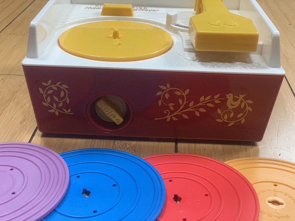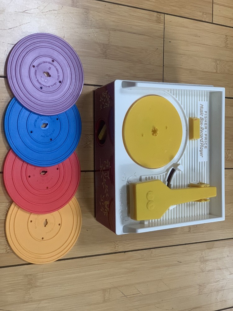 2014 Fisher Price Record Player With 4 Records Working Row Row Head Shoulders. Condition is Used. Shipped with USPS Ground Advantage....