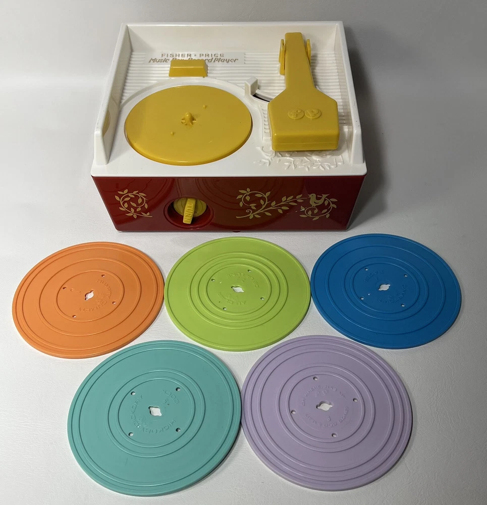 2014 Fisher Price Record Player With 5 Records 10 Songs Works. Records Store Inside The Player! Good To Fair Pre Owned Condition. The Player Works Great But There Are Scratches And Wear On The Body Of The Player From Prior Use. Ships Without Batteries. Please See Pictures And Video For Details. Thank You!