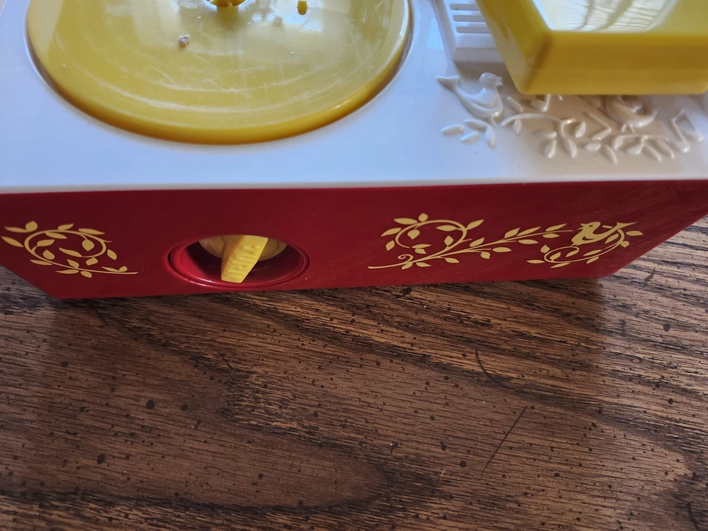 This 2014 Mattel Fisher-Price Music Box is a perfect addition to your collection. It comes with a record player and two records (Hickory Dickory/Farmer in the Dell and London Bridge/Where has my LittlecDog Gpbe) that will definitely bring back some nostalgic feels. The brand, Mattel, is known for producing high-quality toys and this music box is no exception. It is a great gift for kids and adults alike who love music and vintage toys. The music box features featured refinements such as Fisher Price Record Player which makes it a great find for collectors. It falls under the category of Toys & Hobbies, Preschool Toys & Pretend Play, Fisher-Price, 1963-Now, and Musical Toys. Get your hands on this lovely music box and enjoy the music it brings! Clean battery container but batteries not included. See pics, sold as is.