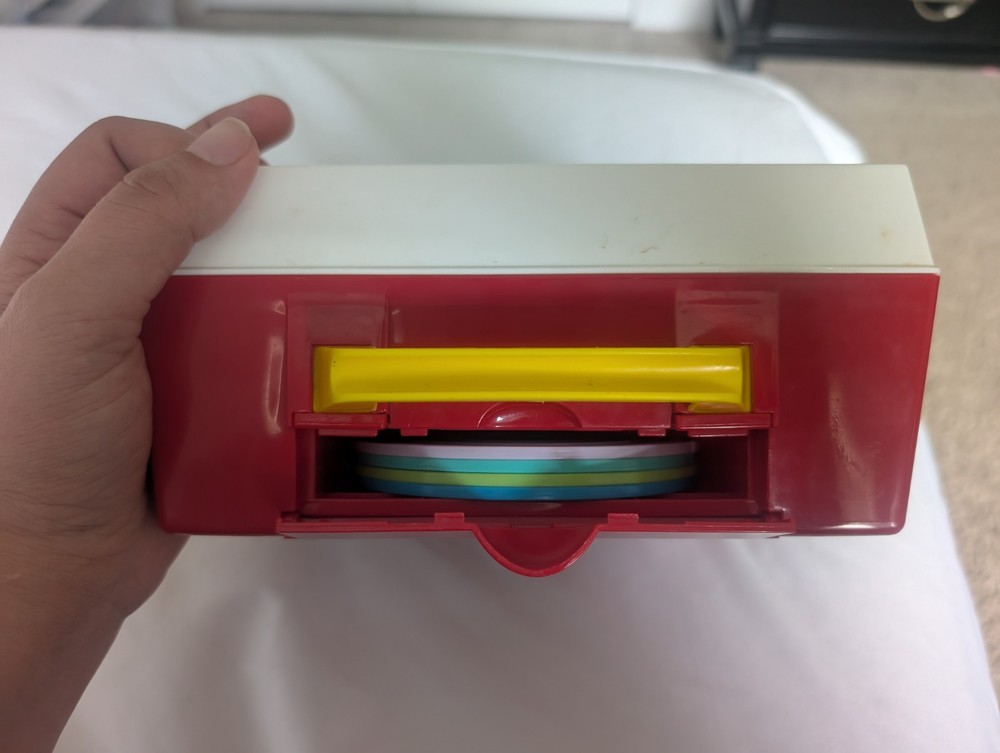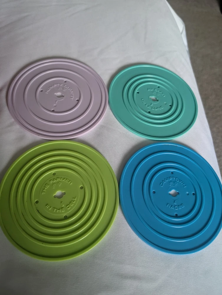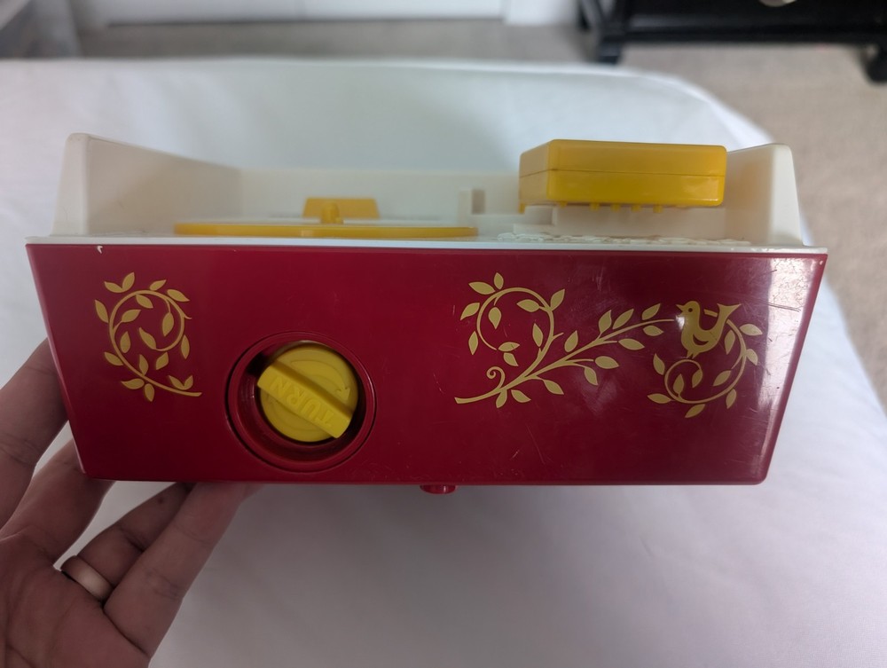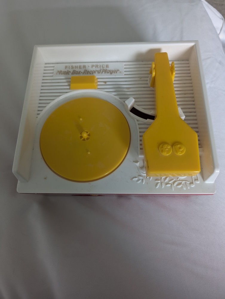 This vintage replica Fisher-Price music box toy record player is a must-have for collectors and children alike this is a parts player as the spring turning the record is broken. Made in the United States in 2014, it is perfect for children aged 3-4 years old. The set includes 4 discs, allowing for hours of musical fun. Please note the box works outside of the spring to turn the record is broken. The player will play if you manually turn the record so all other parts seem great. This could be combined with another to fix. All records in good shape The brand, Fisher-Price, is known for its high-quality and durable toys, and this music box is no exception. It is a great addition to any preschooler's toy collection and is sure to provide endless entertainment. Whether you are looking for a gift for a young child or want to add to your own collection, this music box is a perfect choice.
