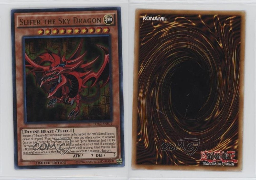 2016 Yu-Gi-Oh! - Legendary Decks II - Collector's Set - 1st Edition #LDK2-ENS01 Slifer the Sky Dragon COMC Item: 264653779 - YuGiOh Card - Featuring Slifer the Sky Dragon Search for more: 2016 Yu-Gi-Oh! Search for more: 2016 Yu-Gi-Oh! - Legendary Decks II - Collector's Set - 1st Edition View all of our Listings Auctions Buy It Now About Us Located in the beautiful Pacific Northwest, COMC (Check Out My Cards) is the world's largest consignment service for trading card singles. More than 10,000 people have used our consignment service to list over 50 million trading cards. Find out how we can help you consign your items on eBay by contacting us through eBay messaging. COMC -- "The Safe & Easy Way to Buy & Sell" Raw Condition for Modern Cards Unless otherwise noted, raw modern cards are listed in Near Mint-Mint condition or better. A NM-MT card appears to be Mint at first glance, but upon closer inspection, may exhibit some of the following: minor print defects (e.g. roller marks, print line, dimple), minor scratches, slight edge wear, and slight corner wear. Centering is clearly visible in the images provided and does not factor into our condition assessment. Raw Condition for Vintage Cards Unless otherwise noted, raw vintage cards are listed in Excellent condition or better. An EX card may exhibit some of the following: minor rounding of corners, surface wear, print defects, light scratches, and slight edge wear/chipping. Centering is clearly visible in the images provided and does not factor into our condition assessment. Domestic Shipping Combined shipping for multiple items is available. To receive combined shipping, please ensure all desired items are in your eBay shopping cart before proceeding to checkout. eBay limits orders to 40 items per order. We automatically combine multiple orders placed on the same day. If you place multiple orders on the same day, please contact us to request a refund of applicable shipping costs. Signature confirmation may be required on invoices over $400. All cards are protected and shipped securely. International Shipping COMC offers eBay's International Shipping (EIS) for international orders under $2,500* (see country exceptions below). All duties and import fees are paid at checkout; in the rare event that there are additional import fees upon delivery, these are borne by the buyer. EIS packages route through a shipping hub in Erlanger, KY before shipping to their final destination. Please note that EIS does not allow for combined shipments. The shipping rates are determined by eBay and cannot be adjusted. *Maximum sale price exceptions: Colombia, Kuwait ($2,000); Taiwan ($1,539); Chile, Costa Rica, Guatemala, Honduras, Trinidad and Tobago ($1,000); Antigua and Barbuda, Aruba, Belize, Dominica, Grenada, Philippines, Saint Kitts and Nevis, Saint Lucia, Montserrat, Turks and Caicos Islands ($500); Dominican Republic, El Salvador ($200). Please request a shipping quote through eBay messaging for orders that exceed the maximum sale price supported by eBay's International Shipping. You will be responsible for all duties and import fees for international orders shipped outside the EIS. All cards are protected and shipped securely. Payment COMC does not accept offers on our cards through our eBay storefront. COMC utilizes eBay’s managed payments system. If you are experiencing difficulties making a payment, please contact eBay for assistance. Return Policy Returns are only accepted on the rare occasion the item is not as described. If you are making a return, please initiate the return process through eBay so a mailing label can be provided for you. Prior to listing, our expert team carefully assessed this item to represent it accurately. Please review the description and high-definition images prior to purchasing to ensure this item meets your satisfaction. We welcome you to contact us if you have further questions about this item. Trust and Integrity COMC carefully assesses each item consigned to us to prevent fraudulent items from entering the marketplace. If you believe an item offered on COMC may be fraudulent, please contact us with details so we can investigate the issue. Items we determine are outside our supported items policy may be removed. Last Modified: 6/10/2025 8:55:09 AM PDT