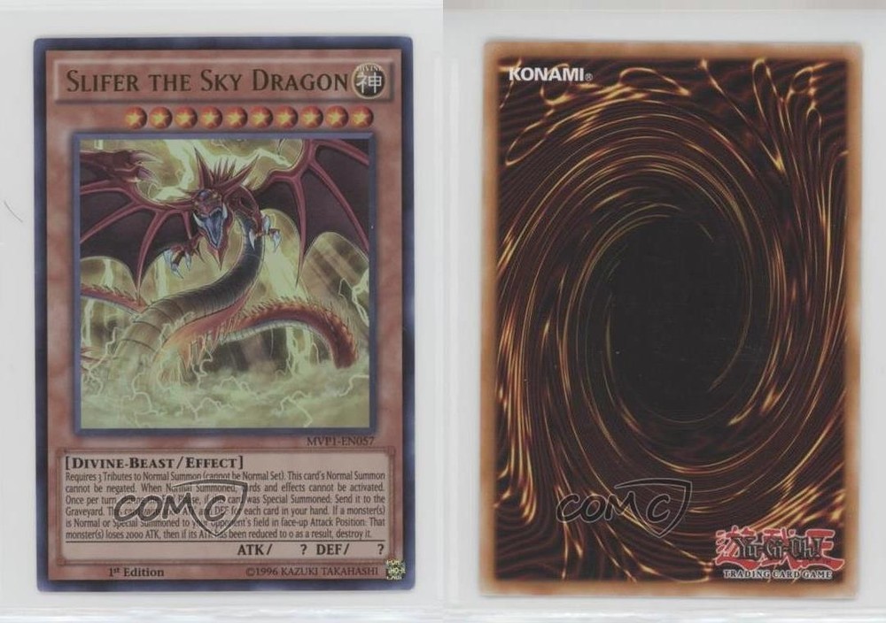 2016 Yu-Gi-Oh! The Dark Side of Dimensions - Movie Pack [Base] - 1st Edition #MVP1-EN057 Slifer the Sky Dragon COMC Item: 108250189 - YuGiOh Card - Featuring Slifer the Sky Dragon Search for more: 2016 Yu-Gi-Oh! The Dark Side of Dimensions Search for more: 2016 Yu-Gi-Oh! The Dark Side of Dimensions - Movie Pack [Base] - 1st Edition View all of our Listings Auctions Buy It Now About Us Located in the beautiful Pacific Northwest, COMC (Check Out My Cards) is the world's largest consignment service for trading card singles. More than 10,000 people have used our consignment service to list over 50 million trading cards. Find out how we can help you consign your items on eBay by contacting us through eBay messaging. COMC -- "The Safe & Easy Way to Buy & Sell" Raw Condition for Modern Cards Unless otherwise noted, raw modern cards are listed in Near Mint-Mint condition or better. A NM-MT card appears to be Mint at first glance, but upon closer inspection, may exhibit some of the following: minor print defects (e.g. roller marks, print line, dimple), minor scratches, slight edge wear, and slight corner wear. Centering is clearly visible in the images provided and does not factor into our condition assessment. Raw Condition for Vintage Cards Unless otherwise noted, raw vintage cards are listed in Excellent condition or better. An EX card may exhibit some of the following: minor rounding of corners, surface wear, print defects, light scratches, and slight edge wear/chipping. Centering is clearly visible in the images provided and does not factor into our condition assessment. Domestic Shipping Combined shipping for multiple items is available. To receive combined shipping, please ensure all desired items are in your eBay shopping cart before proceeding to checkout. eBay limits orders to 40 items per order. We automatically combine multiple orders placed on the same day. If you place multiple orders on the same day, please contact us to request a refund of applicable shipping costs. Signature confirmation may be required on invoices over $400. All cards are protected and shipped securely. International Shipping COMC offers eBay's International Shipping (EIS) for international orders under $2,500* (see country exceptions below). All duties and import fees are paid at checkout; in the rare event that there are additional import fees upon delivery, these are borne by the buyer. EIS packages route through a shipping hub in Erlanger, KY before shipping to their final destination. Please note that EIS does not allow for combined shipments. The shipping rates are determined by eBay and cannot be adjusted. *Maximum sale price exceptions: Colombia, Kuwait ($2,000); Taiwan ($1,539); Chile, Costa Rica, Guatemala, Honduras, Trinidad and Tobago ($1,000); Antigua and Barbuda, Aruba, Belize, Dominica, Grenada, Philippines, Saint Kitts and Nevis, Saint Lucia, Montserrat, Turks and Caicos Islands ($500); Dominican Republic, El Salvador ($200). Please request a shipping quote through eBay messaging for orders that exceed the maximum sale price supported by eBay's International Shipping. You will be responsible for all duties and import fees for international orders shipped outside the EIS. All cards are protected and shipped securely. Payment COMC does not accept offers on our cards through our eBay storefront. COMC utilizes eBay’s managed payments system. If you are experiencing difficulties making a payment, please contact eBay for assistance. Return Policy Returns are only accepted on the rare occasion the item is not as described. If you are making a return, please initiate the return process through eBay so a mailing label can be provided for you. Prior to listing, our expert team carefully assessed this item to represent it accurately. Please review the description and high-definition images prior to purchasing to ensure this item meets your satisfaction. We welcome you to contact us if you have further questions about this item. Trust and Integrity COMC carefully assesses each item consigned to us to prevent fraudulent items from entering the marketplace. If you believe an item offered on COMC may be fraudulent, please contact us with details so we can investigate the issue. Items we determine are outside our supported items policy may be removed. Last Modified: 6/10/2025 8:44:59 AM PDT