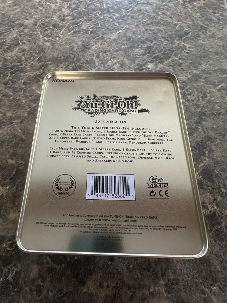 *****Tin only!***** Uncover the nostalgia with the 2016 Yu-Gi-Oh! TCG Yugi & Slifer the Sky Dragon Mega Tin, a must-have for collectors and enthusiasts alike. This iconic tin features the vibrant and memorable artwork that has captivated fans for years. Ideal for housing your cherished cards or simply as a display piece, the tin's multicolor exterior is as bold as it is iconic. Crafted by MEGA, the renowned brand synonymous with quality, this tin is specifically designed to complement your Yu-Gi-Oh! TCG collection. It's not just a container; it's a piece of the rich history of the game, perfect for those who appreciate the depth and lore of the Yu-Gi-Oh! universe. Whether for use or collection, this tin is a tribute to the legacy of the game. *****Tin only!*****