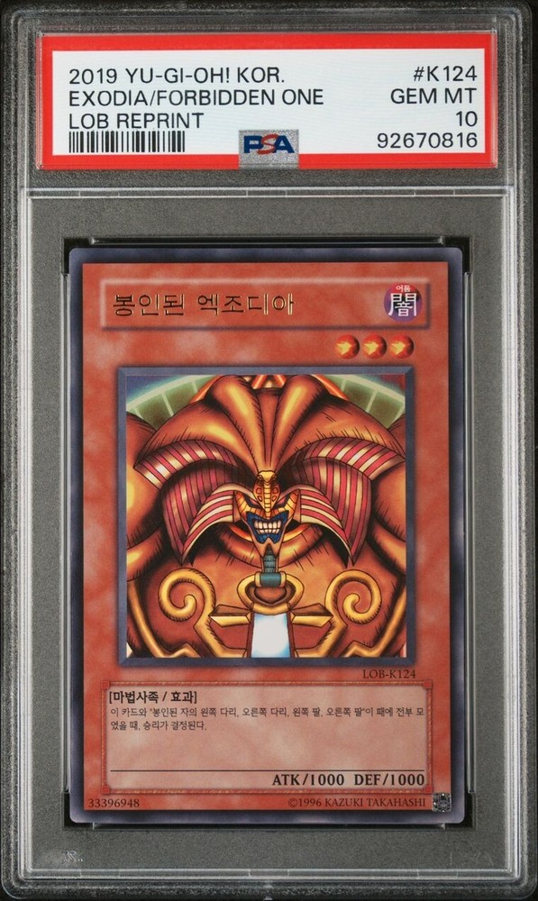 2019 Yugioh Exodia The Forbidden One LOB Reprint Korean PSA 10. Condition is Graded. Dispatched with Royal Mail 2nd Class....
