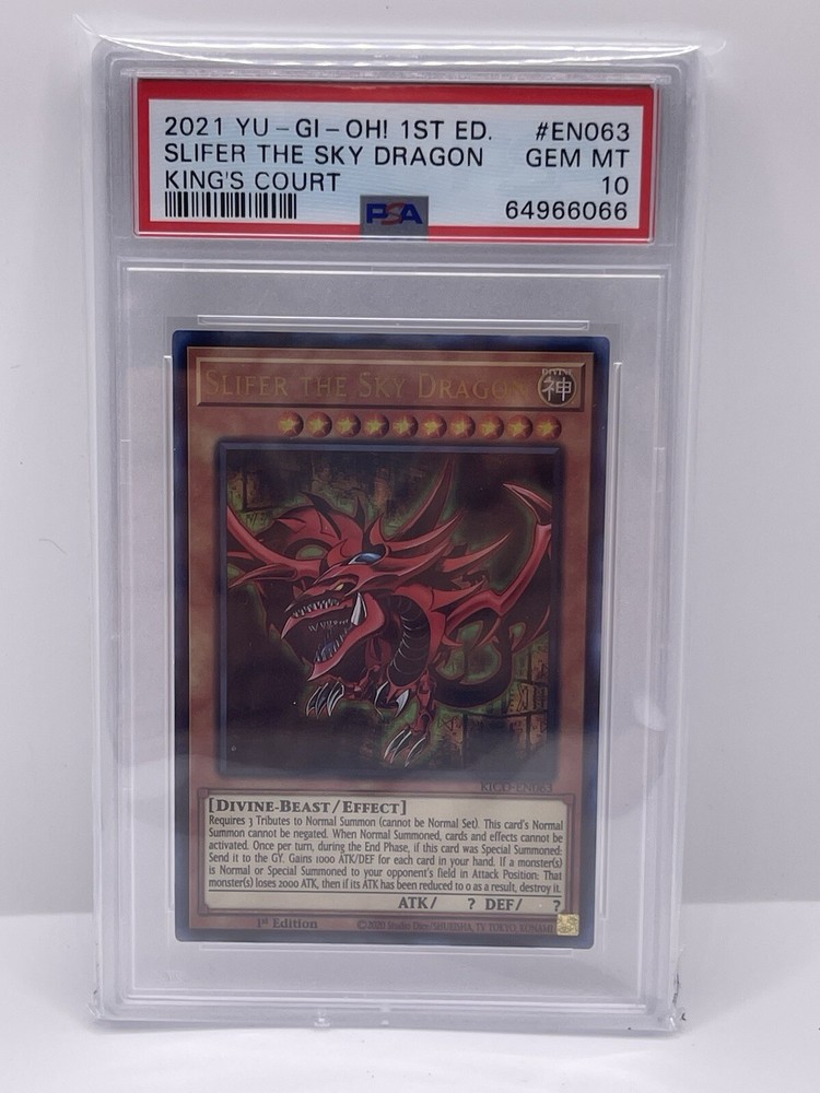 2021 YU-GI-OH! KING'S COURT 1ST EDITION #EN063 SLIFER THE SKY DRAGON PSA 10. Condition is Graded. Shipped with USPS Ground Advantage....