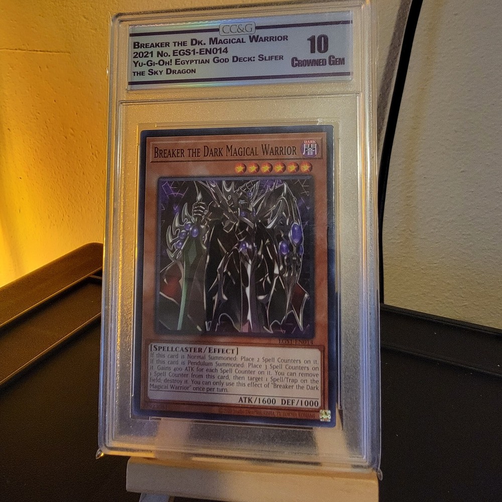 This 2021 Breaker The Dark Magical Warrior is a must-have for any Yu-Gi-Oh! TCG collector. The card is part of the Egyptian God Deck: Slifer The Sky Dragon set and has been professionally graded by CC&G with a grade of 10. The card is in excellent condition. It's perfect for adding to your collection. Don't miss out on this opportunity to own a top-quality card. Please message me with any questions or to get a combined shipping quote for multiple purchases. Thanks for bidding, and good luck!