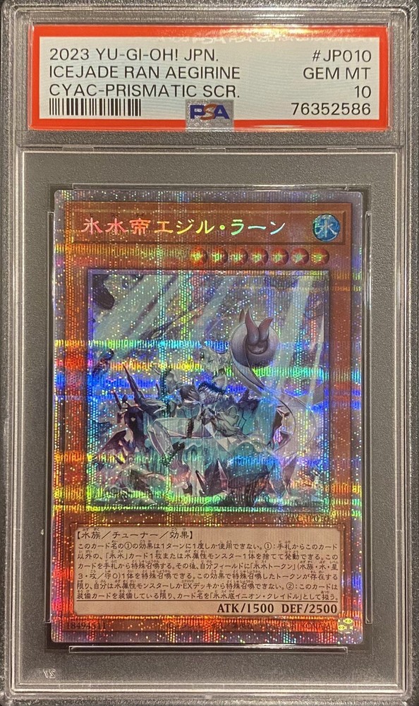 Just got this stunning Icejade Ran Aegirine starlight card in PSA 10—absolutely flawless! The Japanese printing makes the colors pop, and the holographic effect is breathtaking. Seller was super helpful, offered combined shipping, and shipped fast. A must-have for any serious Yugioh collector! Super happy with this gem!