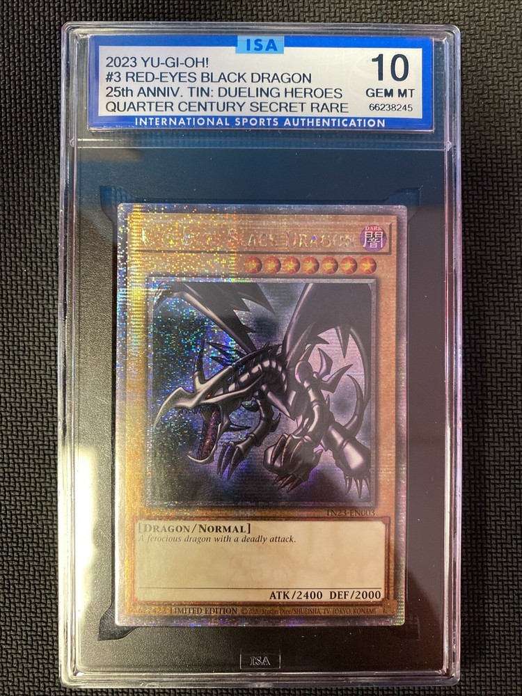 2023 Yu-Gi-Oh! TCG Red-Eyes Black Dragon Quarter Century TN23-EN003 - ISA 10 Please view all pictures before purchasing - the card pictured is the card that will be sent. Card will be securely shipped via USPS Ground Advantage Mail. Check out our other items for more great deals and to combine shipping.