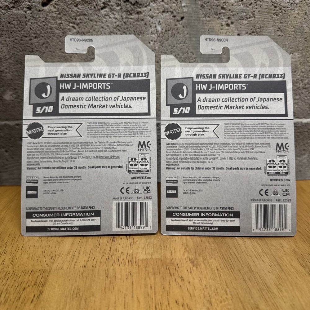 For all the car enthusiasts out there, this lot includes two cases of 2024 Hot Wheels J-Imports, featuring the iconic Nissan Skyline GT-R BCNR33. The gray-colored cars are meticulously crafted at a 1:64 scale, and they come with a Godzilla character family theme. These diecast and toy vehicles are perfect for collectors and kids alike, and they make for a great addition to any toy collection. Get your hands on these Hot Wheels J-Imports today and add some high-speed fun to your playtime!