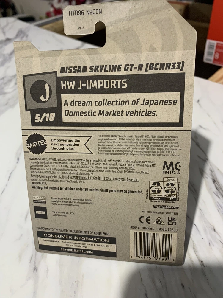This 2024 Hot Wheels Nissan Skyline GT-R BCNR33 in Godzilla Gray is a must-have for any diecast car collector. The 1:64 scale model is part of the Hot Wheels Japan Historics series and comes in an unopened box. The gray color perfectly complements the iconic Nissan Skyline model, which is a popular car among enthusiasts. The Hot Wheels car is made of high-quality diecast material and features a Nissan logo. It's a perfect addition to any collection or a great gift for a car lover. Get your hands on this 2024 Hot Wheels Nissan Skyline GT-R BCNR33 today!