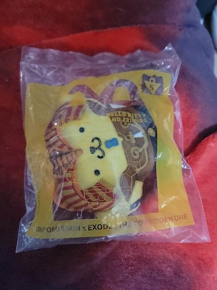 Introducing the limited edition 2024 McDonald's Yu-Gi-Oh! x Hello Kitty #5 Pompompurin x Exodia the Forbidden One collectible plush toy. This adorable plush features the iconic characters Pompompurin and Exodia the Forbidden One from the popular TV show Yu-Gi-Oh!, and is made with high quality materials for long-lasting durability. With its cute design and attention to detail, this plush is a must-have for any fan of the franchise. Manufactured in China in 2024, this collectible is a rare find and a perfect addition to any animation merchandise collection. Don't miss your chance to own this unique piece of Yu-Gi-Oh! history.