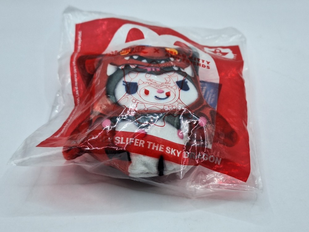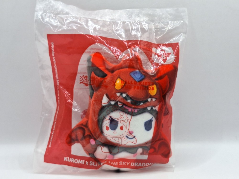 This is a rare and limited edition 2024 McDonalds Yu-Gi-Oh! x Hello Kitty #6 Kuromi x Slifer The Sky Dragon Toy. It features a red plush material and is perfect for collectors and fans of the Yu-Gi-Oh! TV show. The toy is designed for children and is part of the Hello Kitty franchise. The Slifer The Sky Dragon character is a popular animation theme and is displayed in English language. The toy is manufactured in China and is compatible with California Prop 65 Warning. This item is a must-have for all Yu-Gi-Oh! and Hello Kitty collectors and fans.
