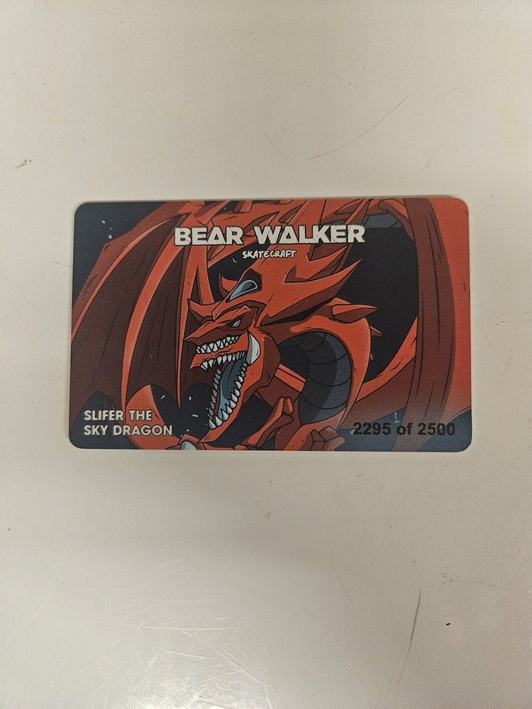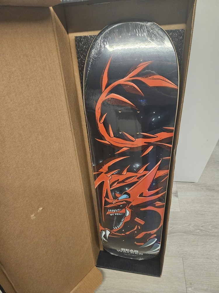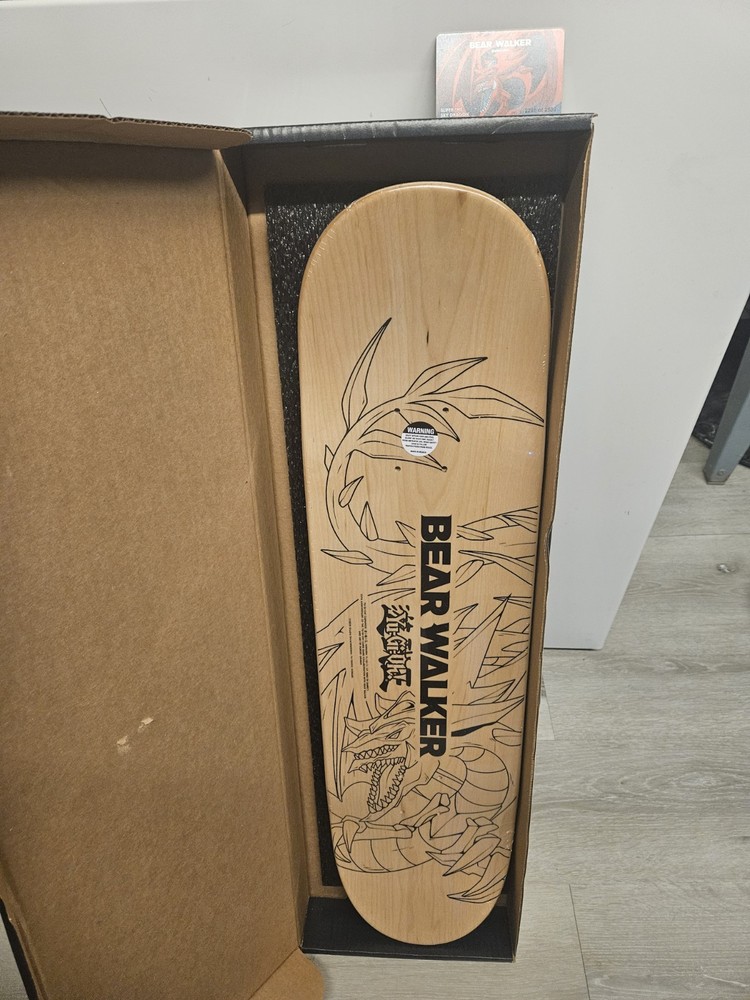 The Bear Walker X Yu-Gi-Oh! Slifer The Sky Dragon skateboard is a unique and limited edition deck designed in collaboration between Bear Walker and Yu-Gi-Oh! This skateboard features a special design inspired by Slifer The Sky Dragon, making it a collectible item for fans of both Bear Walker and Yu-Gi-Oh! It is a high-quality skateboard suitable for outdoor sports and recreational activities, perfect for skaters looking to make a statement with their board.
