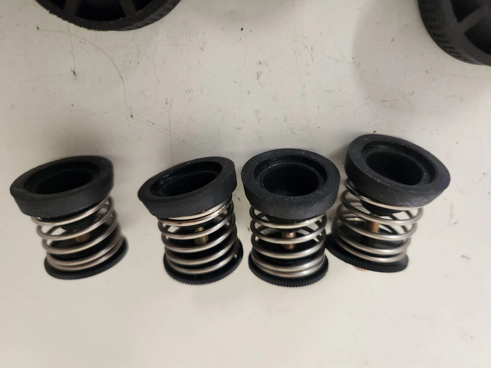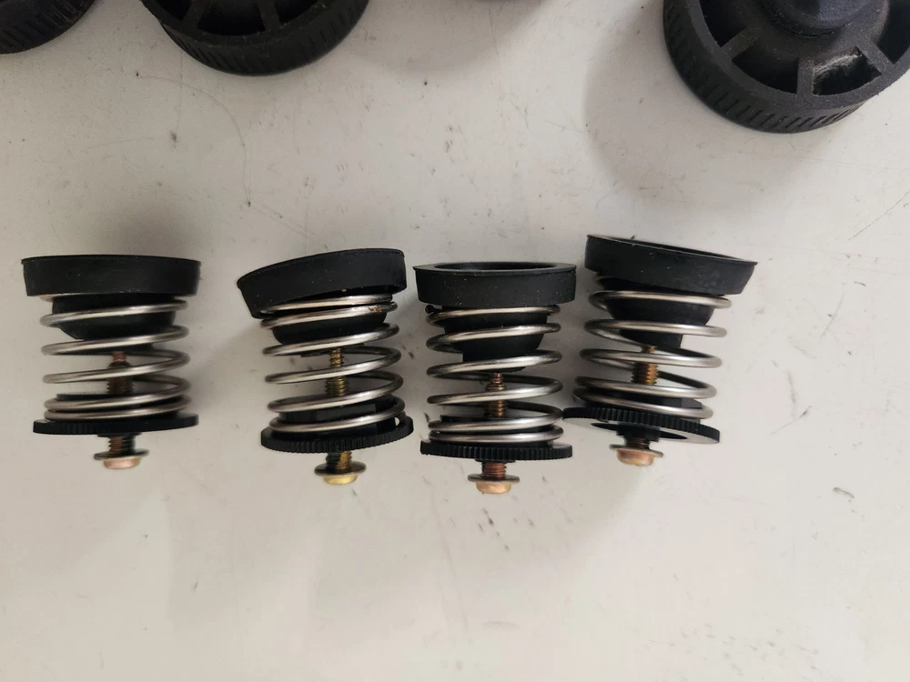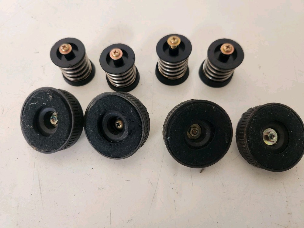 FISHER MT 6360 4 FEET COMPLETE WITH NUT AND SCREW AND ALL 4 SPRINGS AND RUBBER CUSHION THAT MOUNTS INSIDE FOR VIBRATIONWITH RUBBER GRUMMETS. . FREE SHIPPING TO THE LOWER 48 STATES