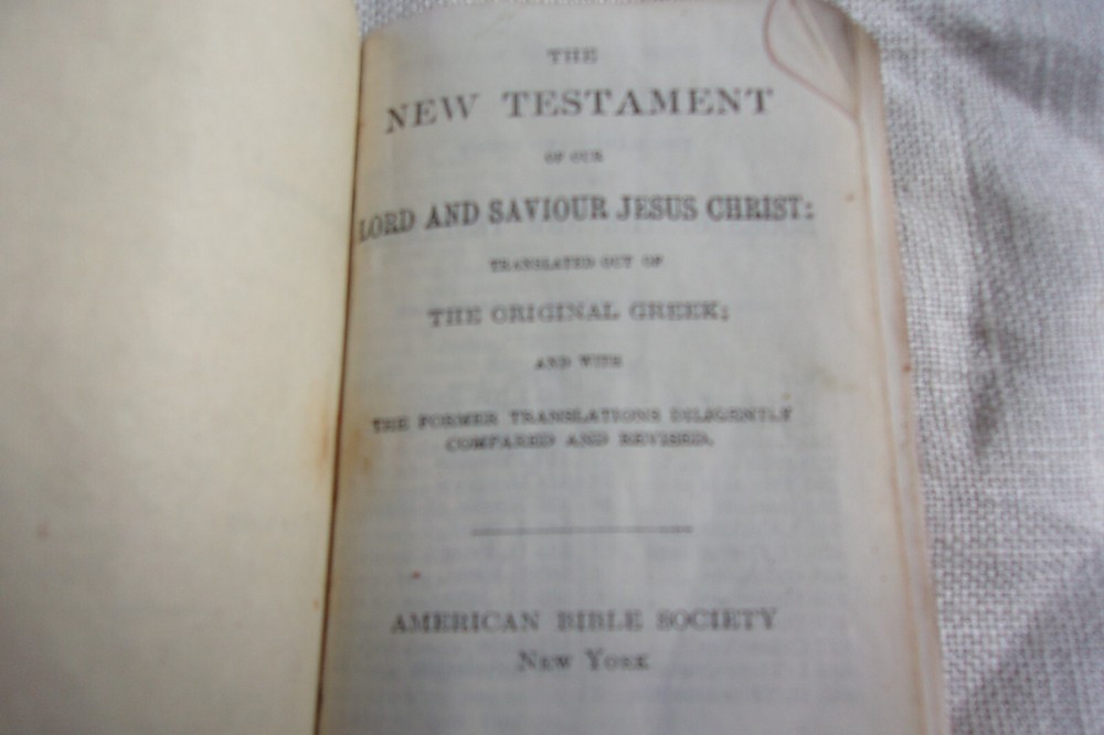 Nice Antique 1918 New Testament or Our Lord and Saviour Jesus Christ. By the American Bible Society and National War Work Council New York. It is a Pocket Bible , Leather Bound and 4 x 2 1/2 inches....
