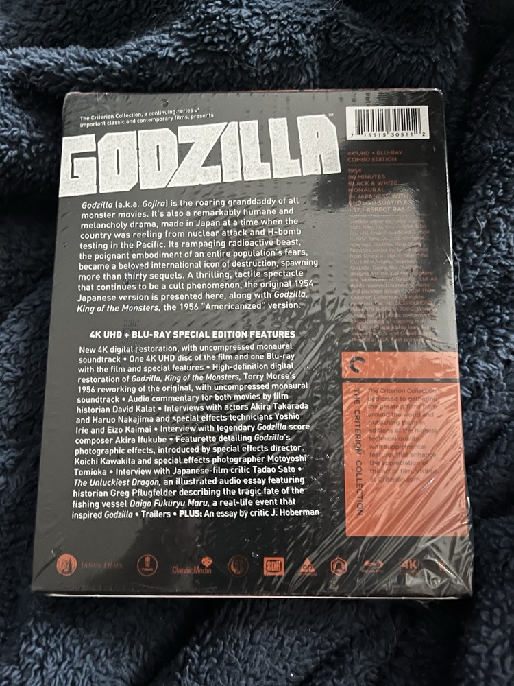 Immerse yourself in the epic adventure with the 4K UHD + Blu-Ray edition of "Godzilla" featuring Isiro Honda, from the esteemed Criterion Collection. This cinematic gem, presented in its original aspect ratio, offers unparalleled picture quality that will captivate your senses and transport you right into the heart of classic monster filmmaking. Whether you're a seasoned collector or a new enthusiast, this edition is a must-have for your film library. It's not just a movie; it's a nostalgic journey with exceptional attention to detail, preserving the essence of the original experience. New in shrinkwrap, it awaits to be a centerpiece of your collection.
