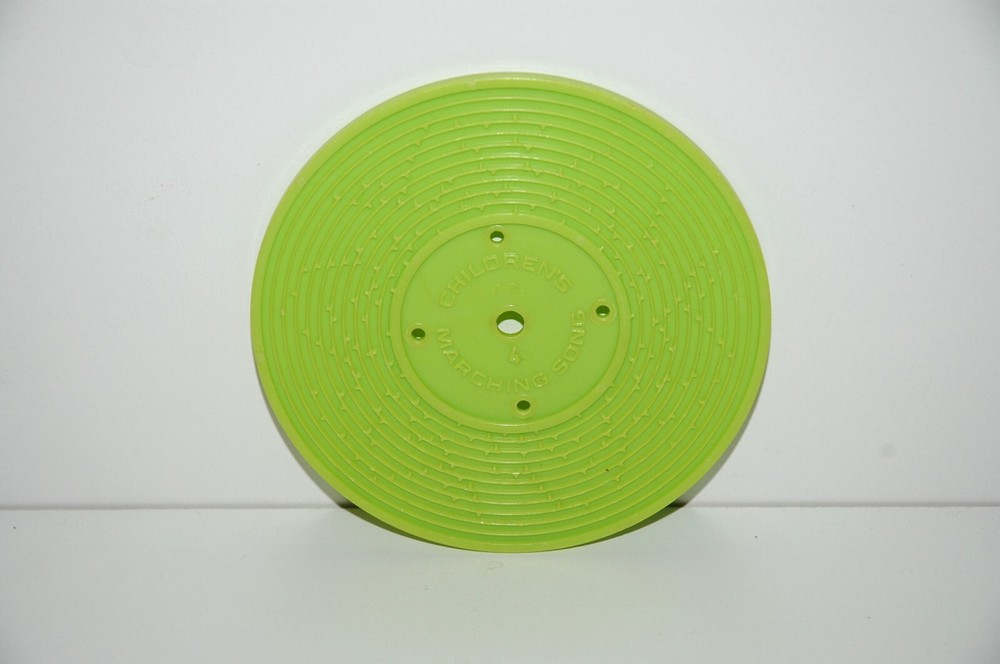 Vintage Fisher-Price original 2-sided replacement record. Lime Green marked 4 with CAMPTOWN RACERS & CHILDRENS MARCHING SONGS. Compatible with models 995 or 2205. No signs of damage, misuse or poor st...