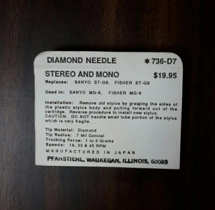 INNER SOUND ELECTRONIC SERVICE 736-D7 Diamond Pfanstiehl Turntable Needle 16, 33 & 45 RPM