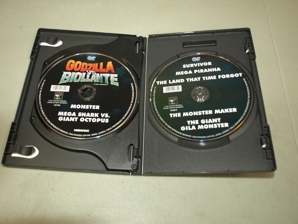 All used disc's are tested that they work before listed. I will give a description on the condition of the disc. Most used cases usually have some scuffs and minor wear on them. See photos for condition of cases. If the disc comes with a insert I will list it. If the description does not say "with insert" than it does not have one. I ship out super fast. Sometimes the same day I receive payment.. Check my feedback. All my customers are very happy. If you ever have a question or a problem with your order just contact me and I'll do my best to solve it. Please make sure your shipping address is correct before buying. I will only ship to the address that is listed with your account. ***FREE SHIPPING**** 8-Movie Monster Pack w/ Godzilla Vs. Biollante (DVD) RARE. THE DISCS ARE ALMOST LIKE NEW. PLAY GREAT.